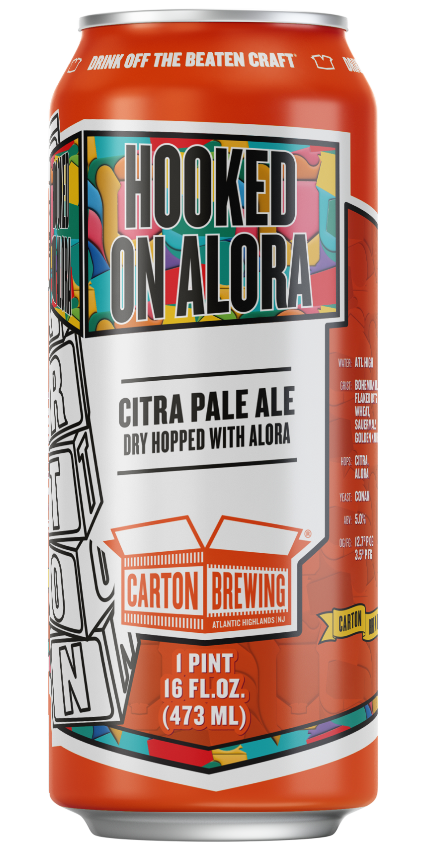 Underneath it all, Conan yeast ties everything together, adding a soft stone-fruit character and rounded mouthfeel that lets us lean into lower ABV without sacrificing the juicy haze we know and love. The result is bright, balanced, and endlessly drinkable — hop-forward without the weight, flavorful without the fatigue. Hooked On Alora is Carton doing what we’ve been focused on lately: keeping the flavor turned up while keeping things light on their feet.