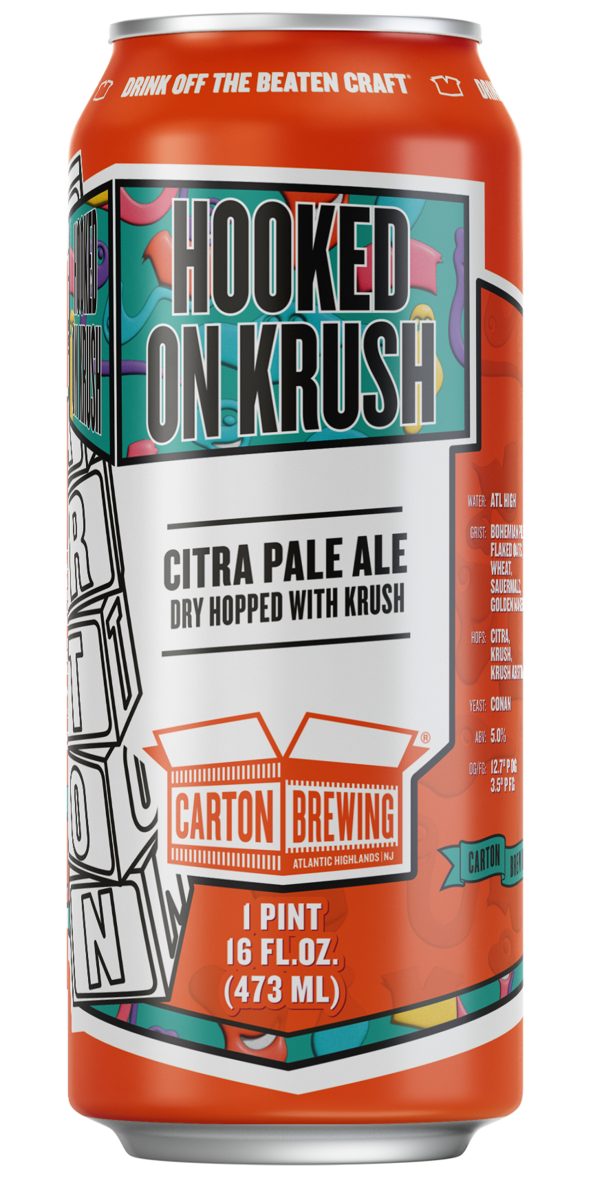 Hooked On Krush is our latest pale built the Carton way — start with balance, then push the hop expression until it feels electric. Citra lays the groundwork with bright citrus oil and soft mango, the kind of familiar signal we’ve been chasing for years. Then Krush takes over: peach rings, tropical fruit, and citrus candy in full color.